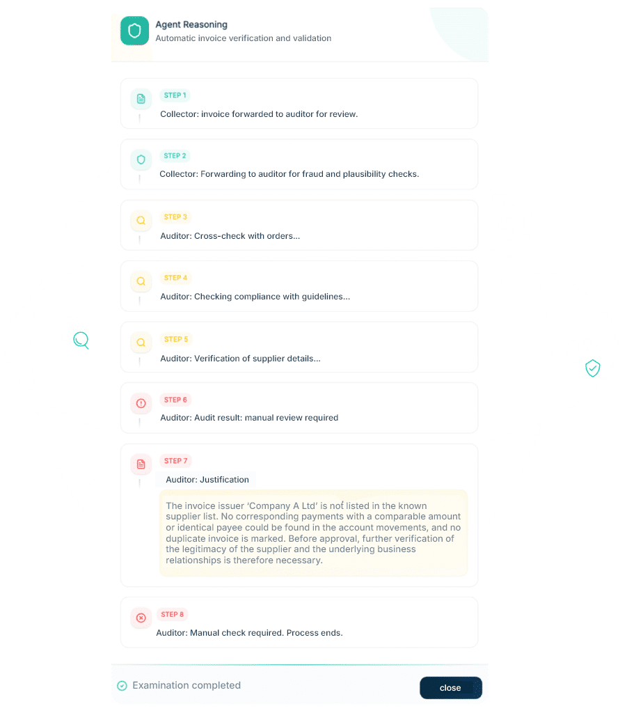 With fino ai-agents, compliance becomes a breeze. Every step – from invoice to payment – is automatically documented and stored in the audit trail. Decisions, approvals and amounts can be traced seamlessly at any time.